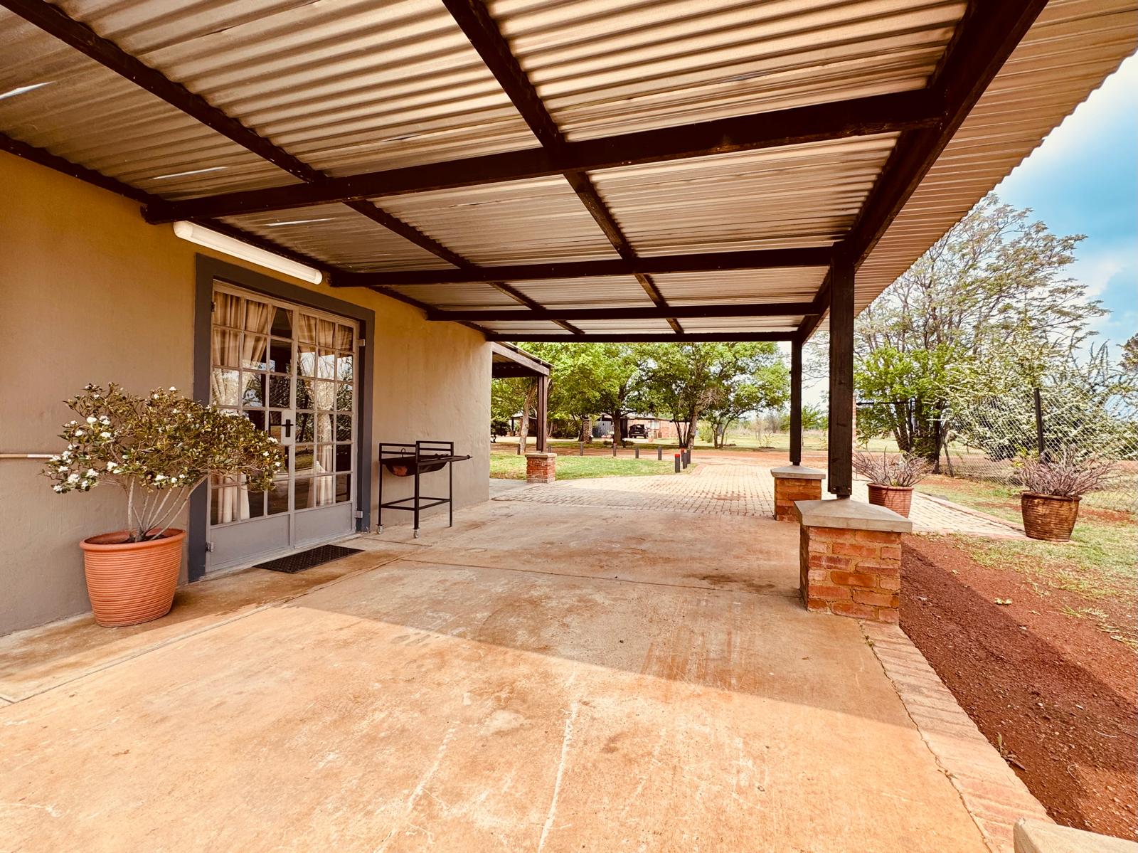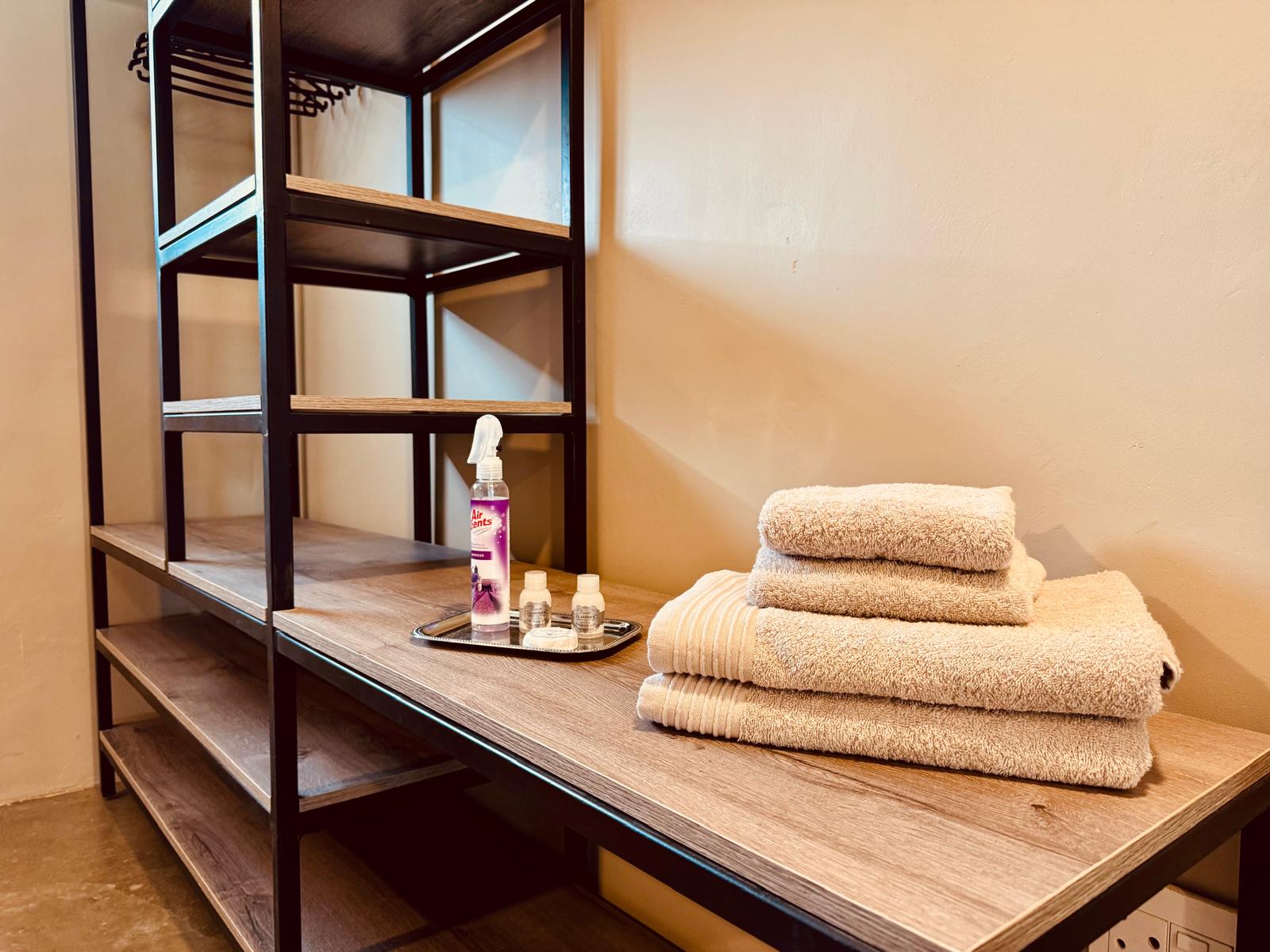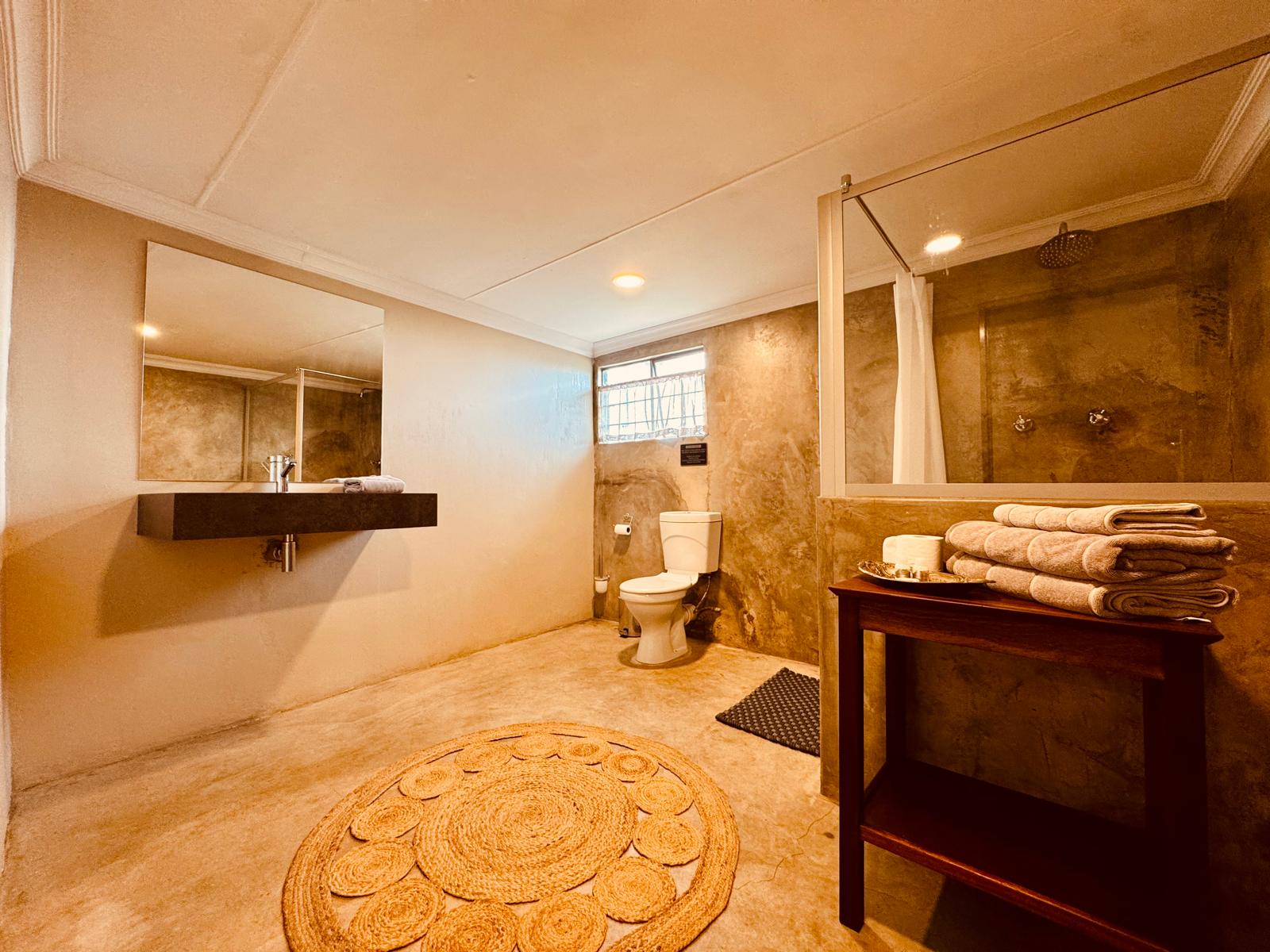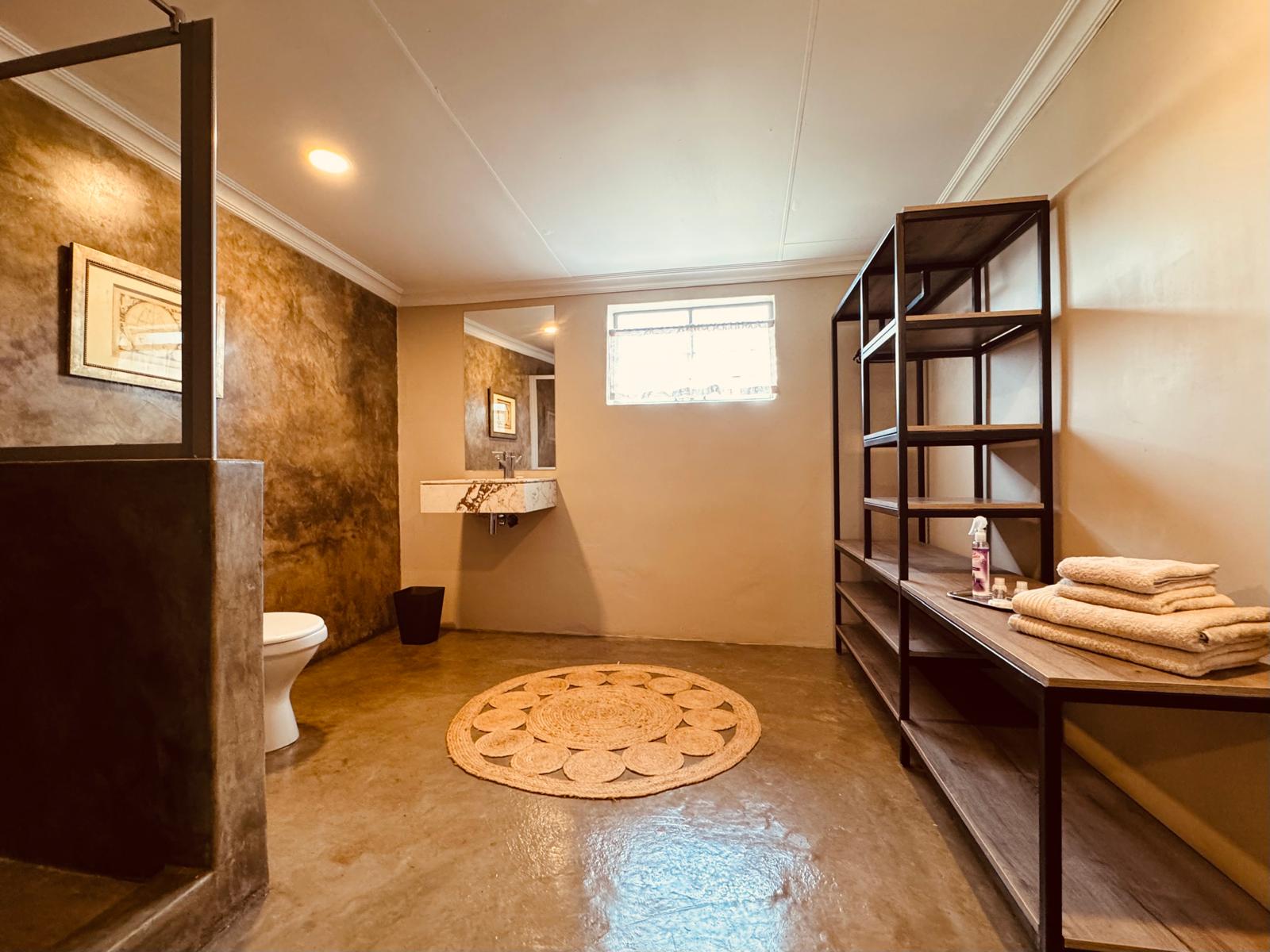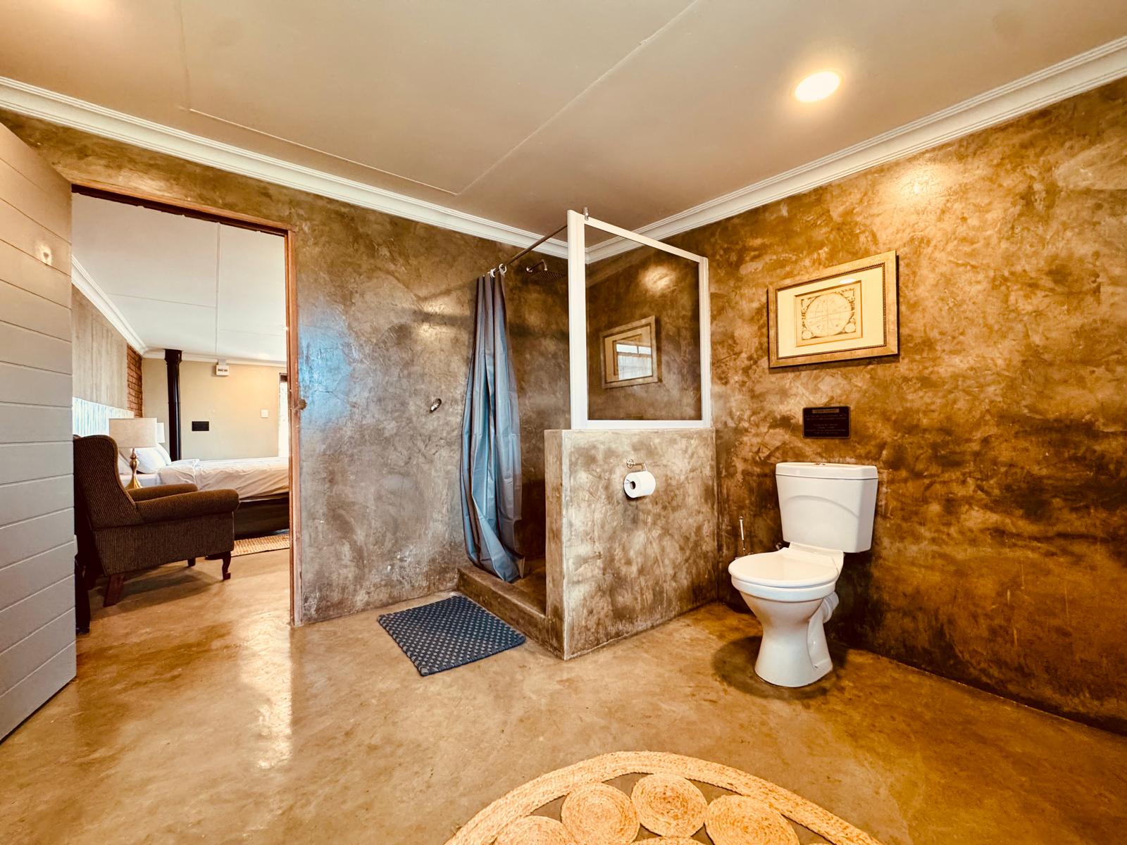 Spacious double suite, with twin beds (side-by-side) (King Size). It features a TV with satellite, Wi-Fi, a kitchenette, fireplace for winter months, and small seated patio with its own braai.