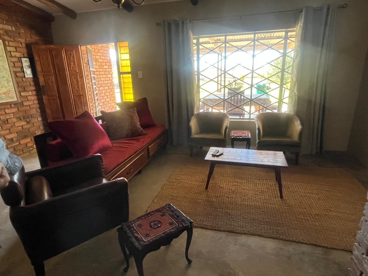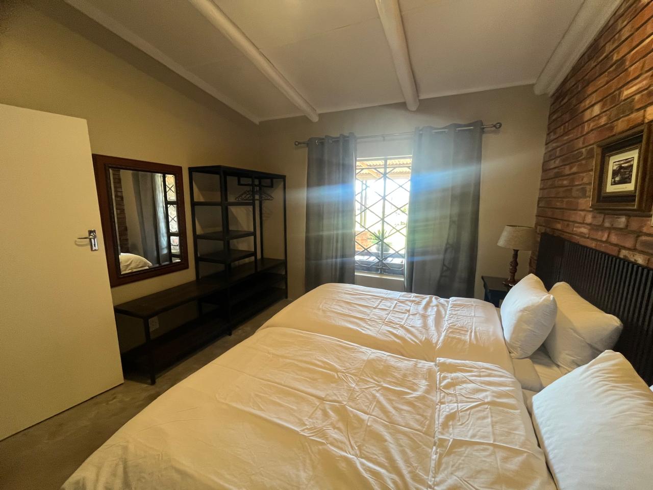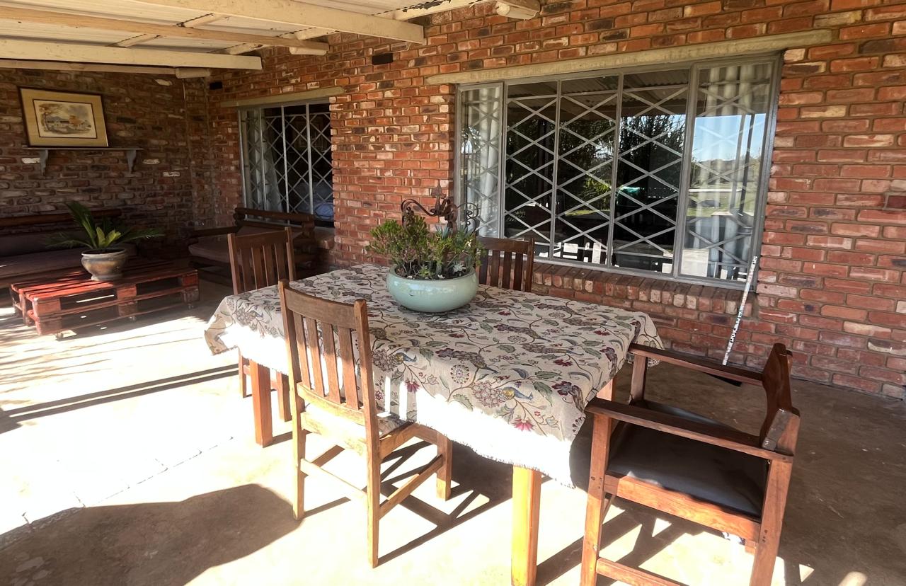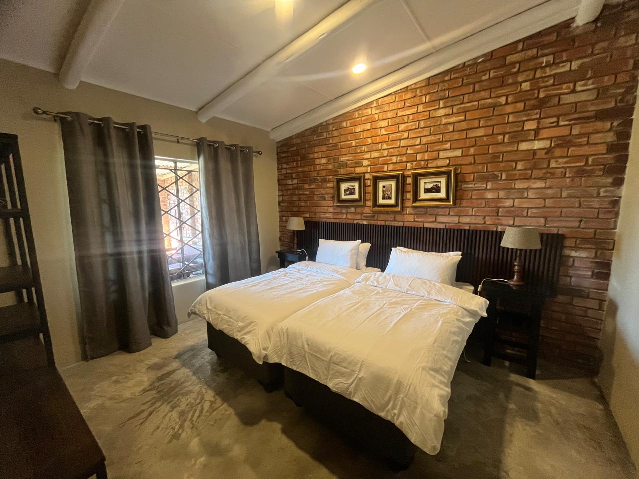 It features a TV with satellite, Wi-Fi, a kitchenette, gas heaters, fans, and a large patio with braai facilities and dining area.