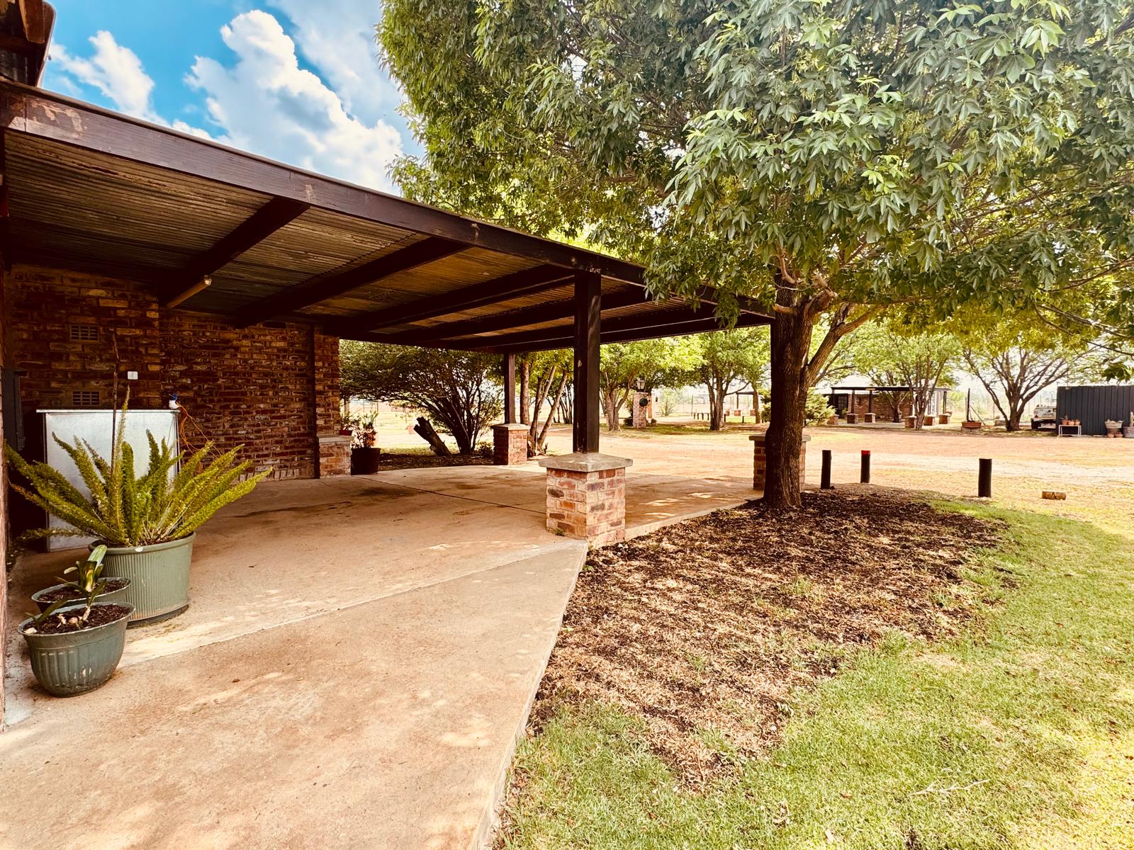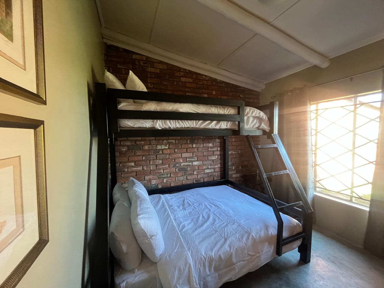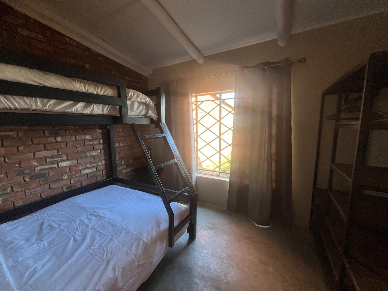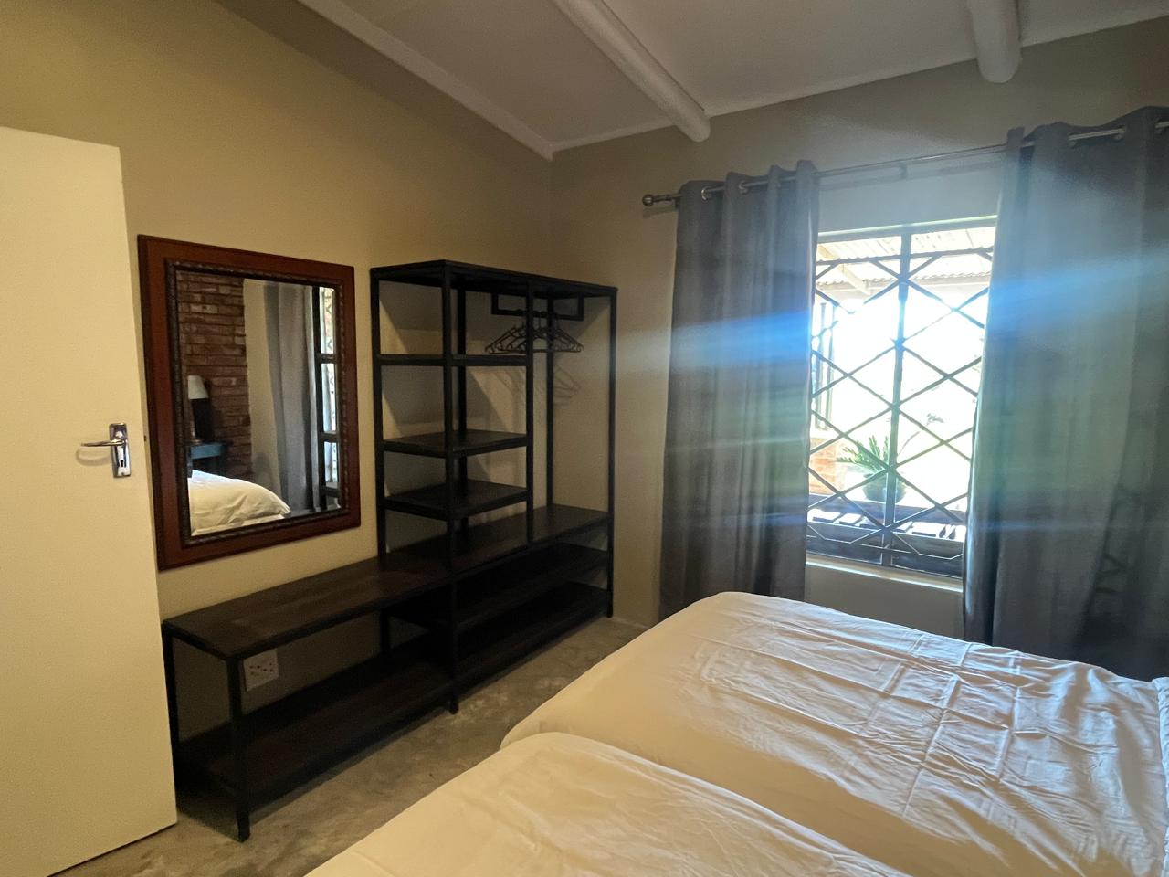 It features a TV with satellite, Wi-Fi, a kitchenette, gas heaters, fans, and a large patio with braai facilities and dining area.